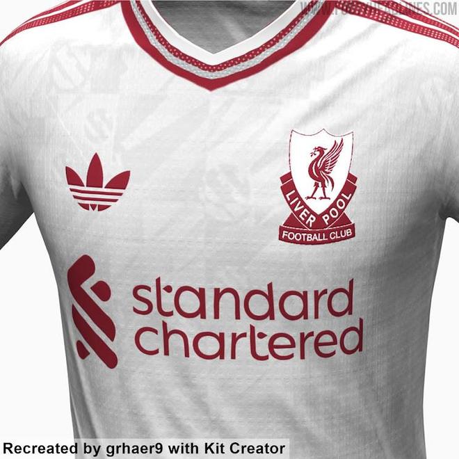 4月5日,足球装备网站Footyheadlines曝光了利物浦2026-27赛季客场球衣的设计细节。这款由阿迪达斯打造的客场球衣以白色为主色调,搭配栗红色的徽标,并在前胸采用独特的盾牌式徽章图案,灵感来源于1970年代的徽章设计。