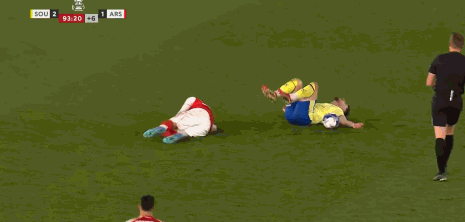 这一事件发生在周六晚足总杯赛事中,南安普顿爆冷2-1击败阿森纳的比赛尾声。